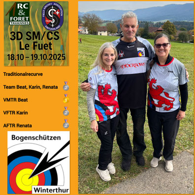2. Rang Bogenschützen Winterthur mit Renata Issler Fortin, Beat Bernauer und Karin Kienast-Weiss